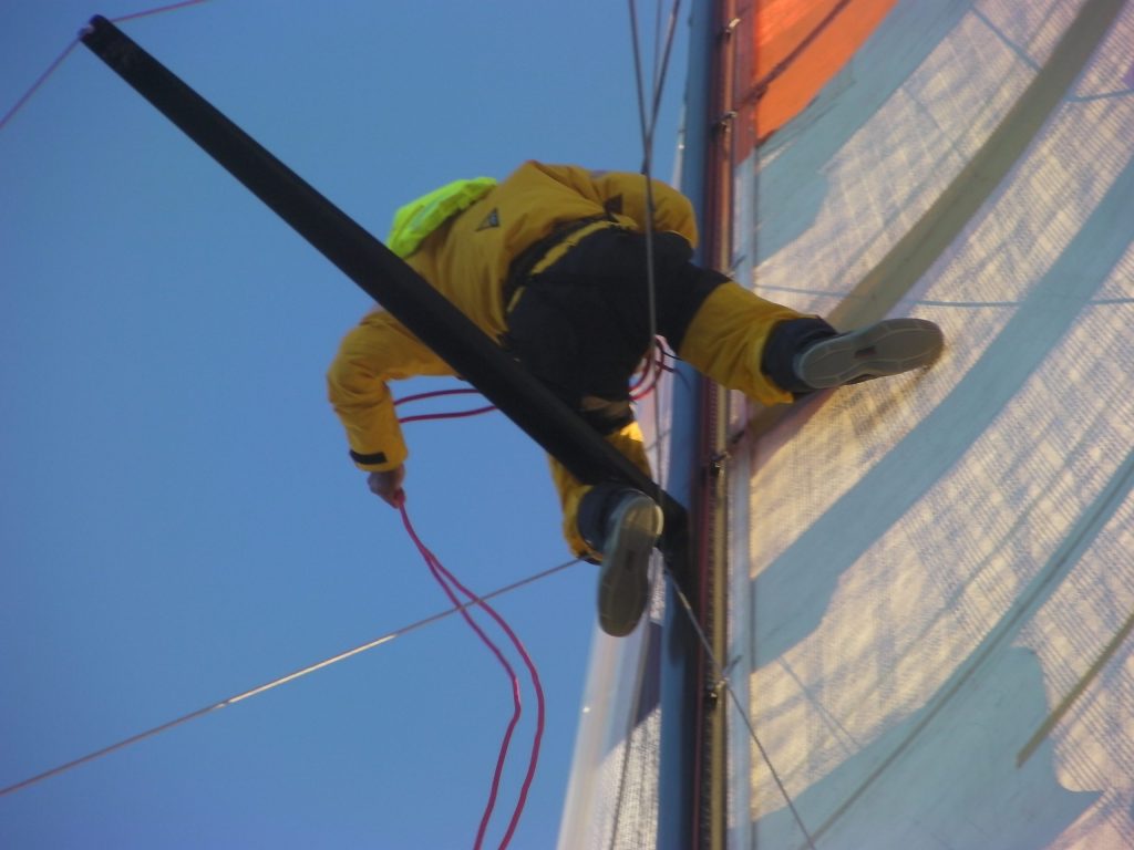 A lot of shit going on this morning. We started with light winds, just about 3 knots, so we decided that we should take the trysail down. The trysail is a small, usually brightly colored sail, much smaller than even a triple reefed mainsail. Its purpose is to be used in heavy wind situations. We pulled it up yesterday, in the afternoon when the winds were hanging in the 20’s with gust expect to be even higher, just as a precaution going into the overnight; changing sails at night is not usually fun, and can be dangerous.