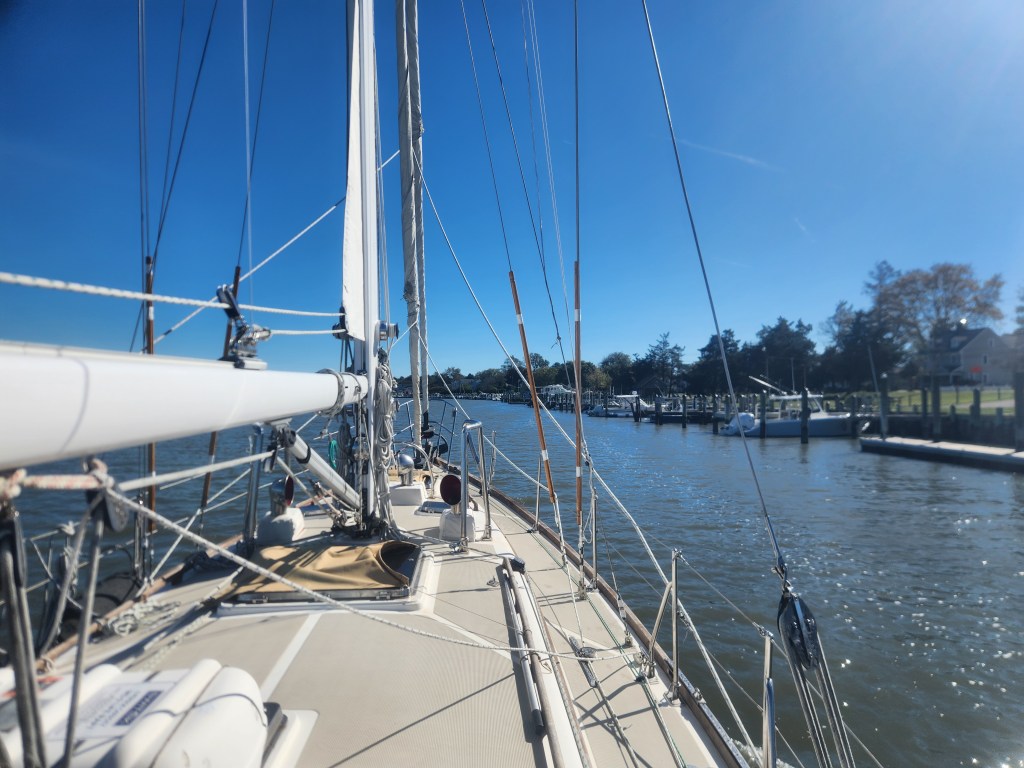 By 9:30am on Friday, October 17, we were anchored in 12 feet of water behind a jetty in Lewes’ outer harbor, completing our 360 mile journey in just over 53 hours, 90% of which was under sail. After some celebratory Scotch we took some well deserved naps before moving Glory to a dock in the downtown area of Lewes about 5 miles away.