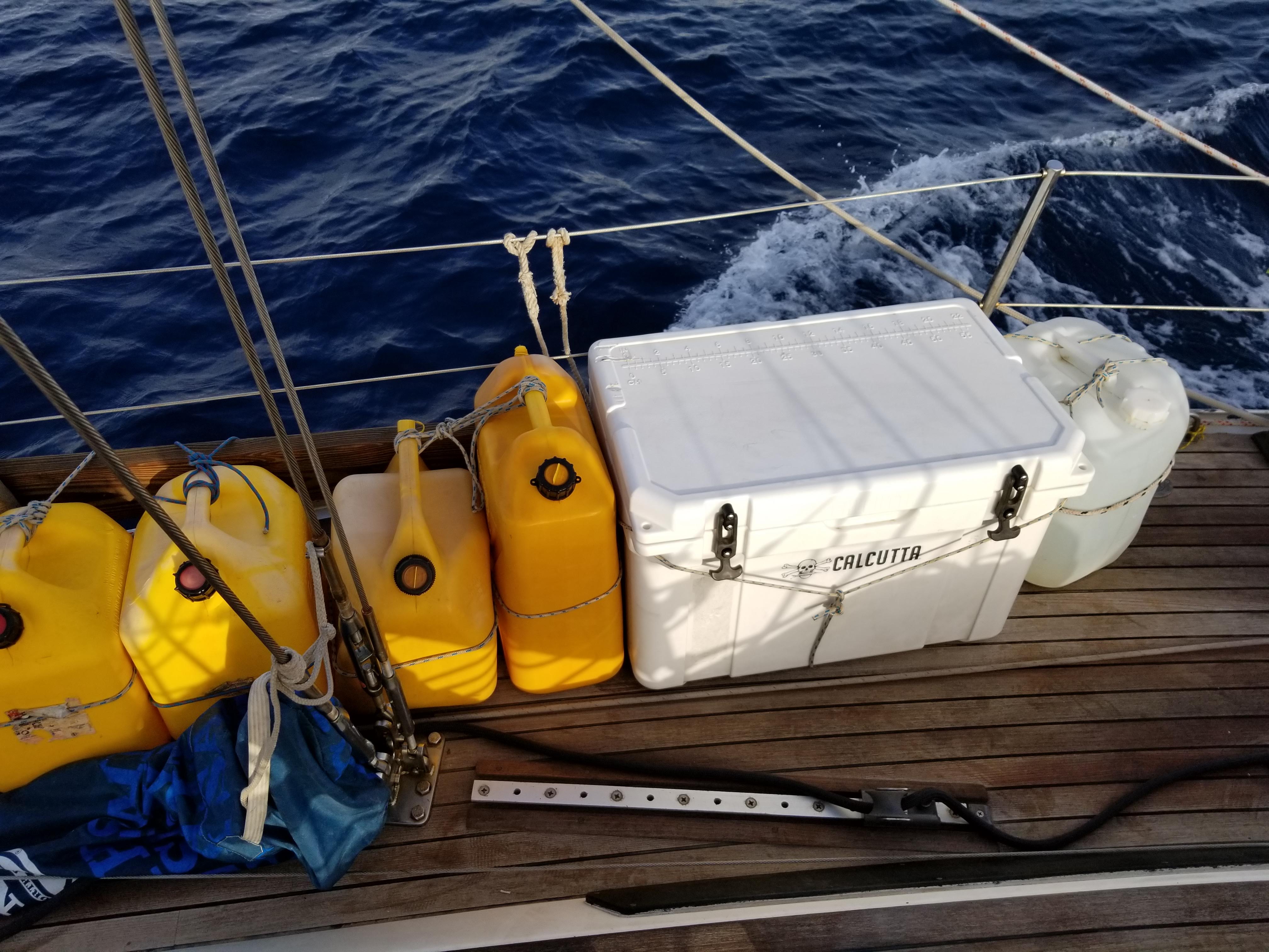 Full diesel containers and one of our three very full external coolers.