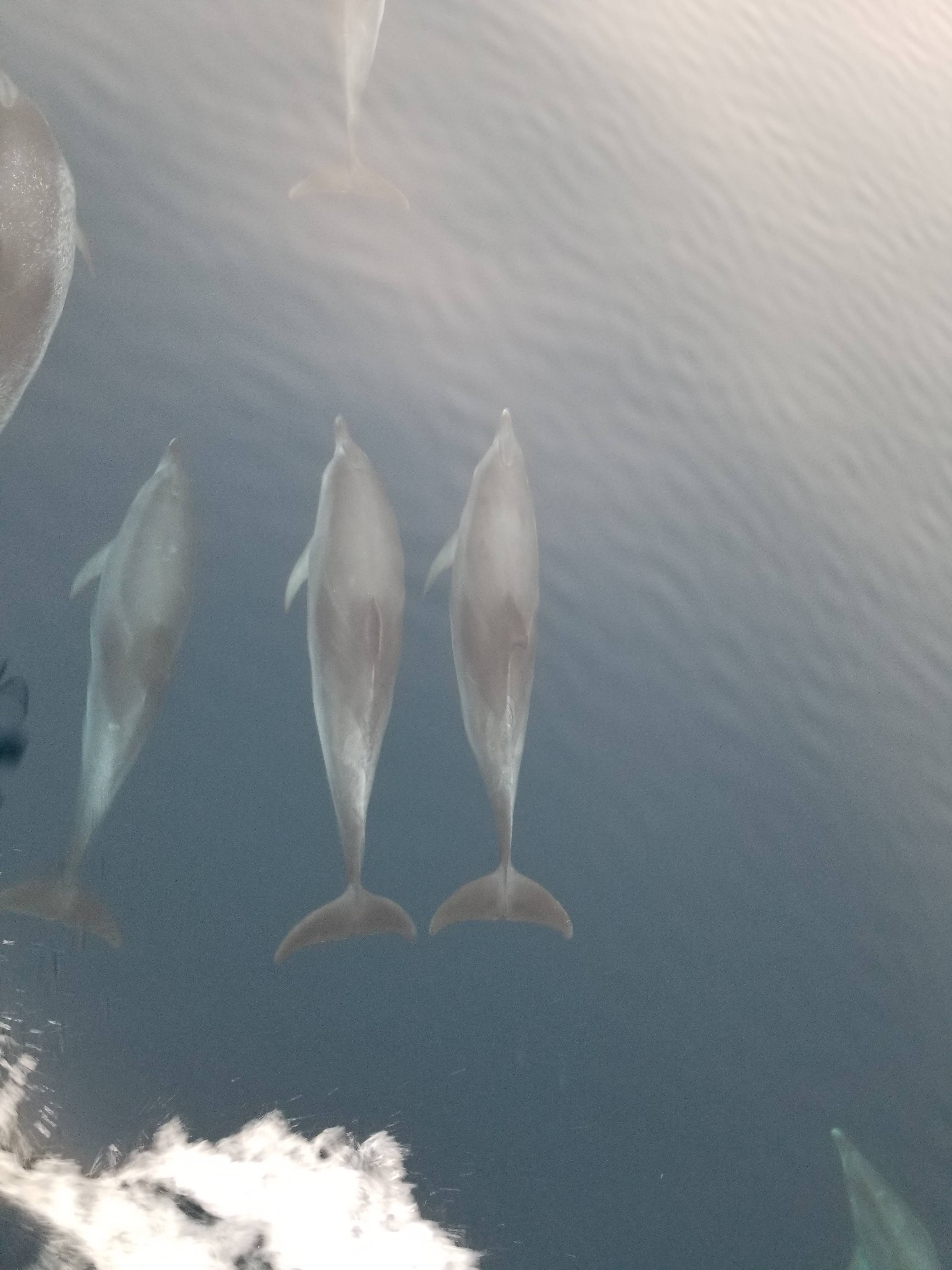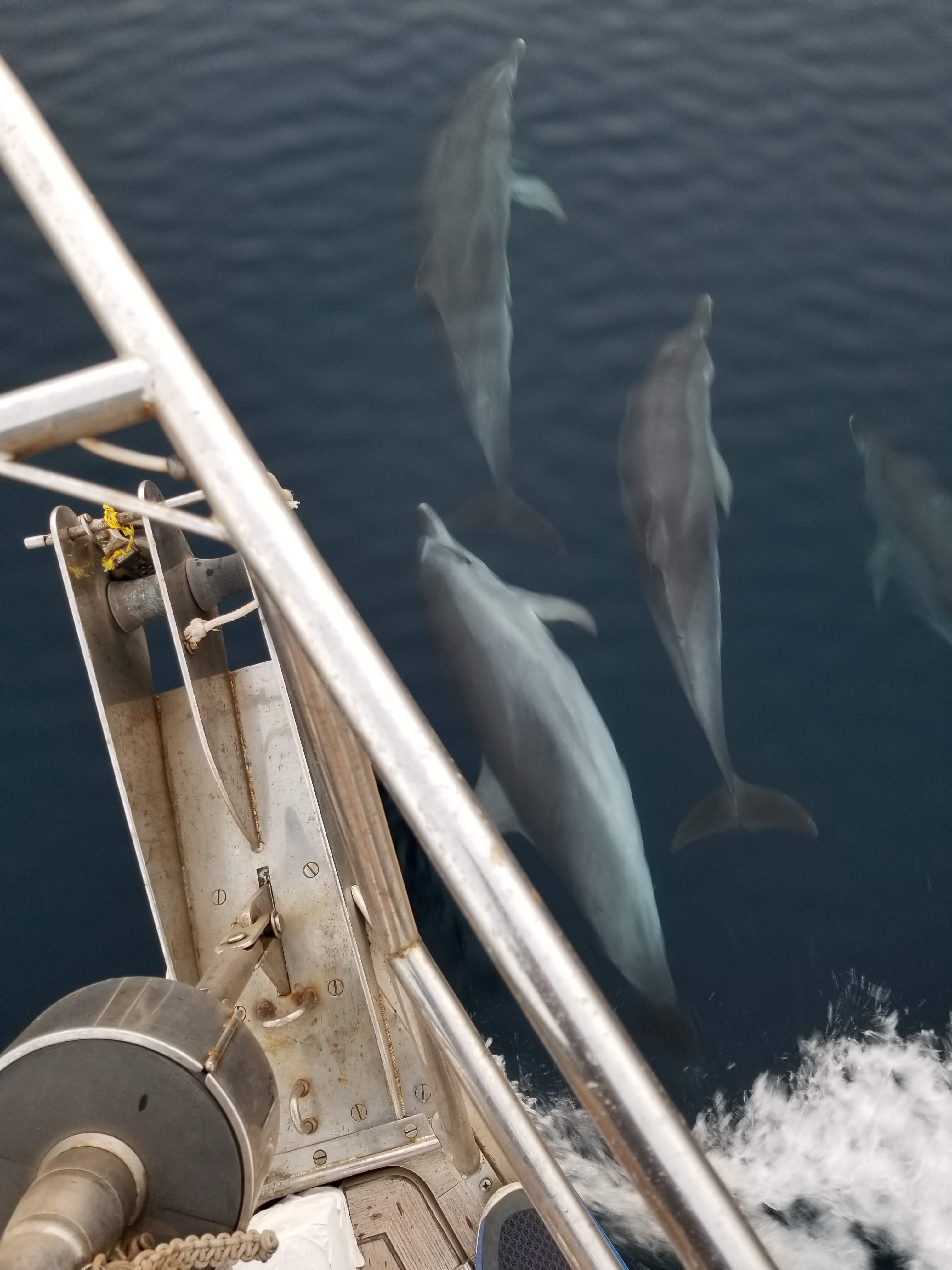 Speaking of fish, well mammals; most days we have had visits from dolphins. They typically swim alongside or in our bow wake, once, so far, they did a few jumps out of the water right on our starboard side. They do look really cool, like they are having fun. I hope they stay away from our fishing lure.