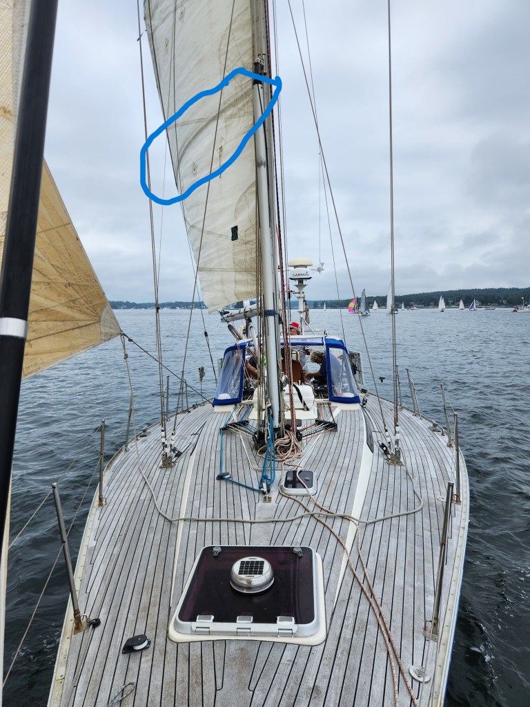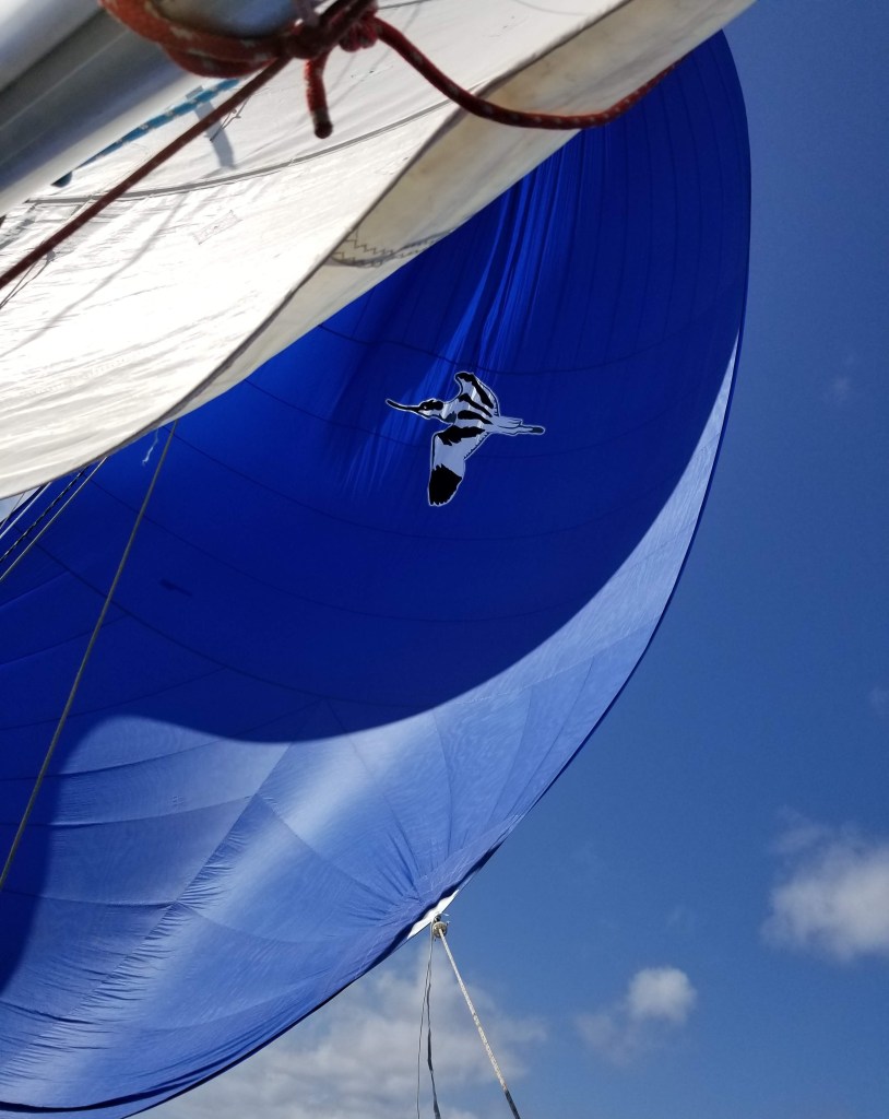 We set the spinnaker, which is easy once it’s up and flying however it can be a beast to set up.
