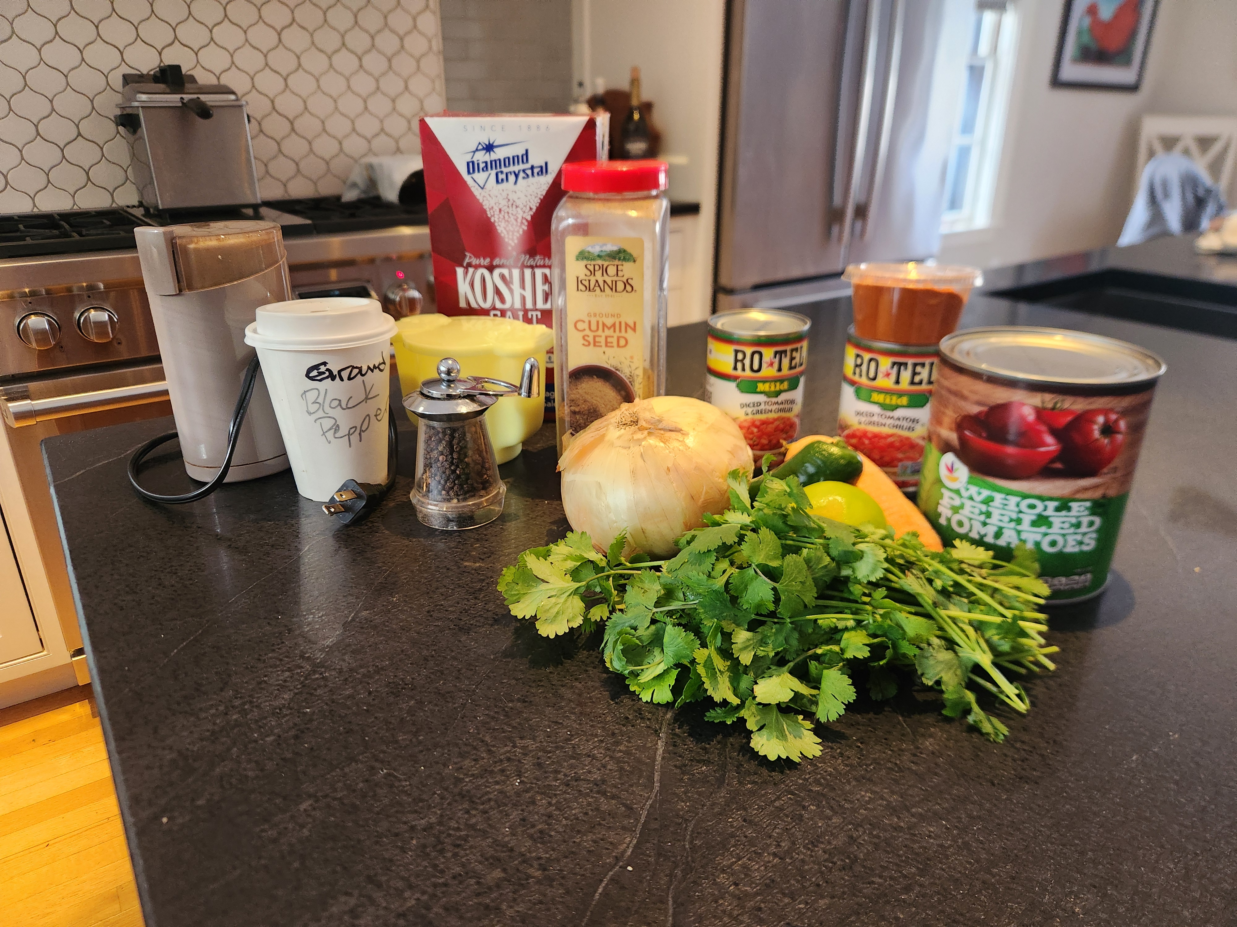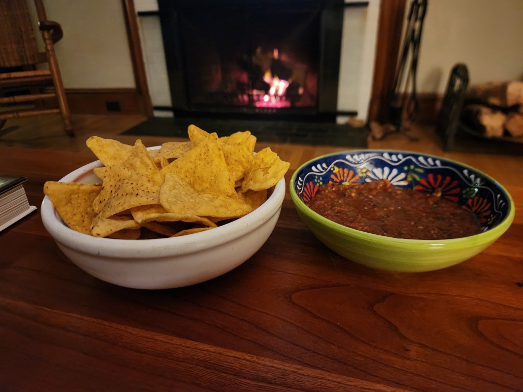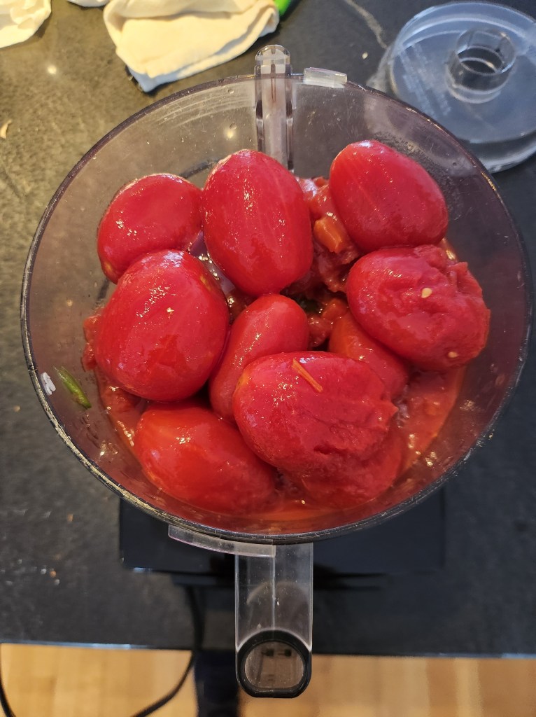 I’ve tried substituting canned fire roasted tomatoes for the canned whole peeled tomatoes, which totally changed the salsa, giving it a strong roasted somewhat smoky flavor, which is nice for a change. I’ve even done half fire roasted and half not, also good.