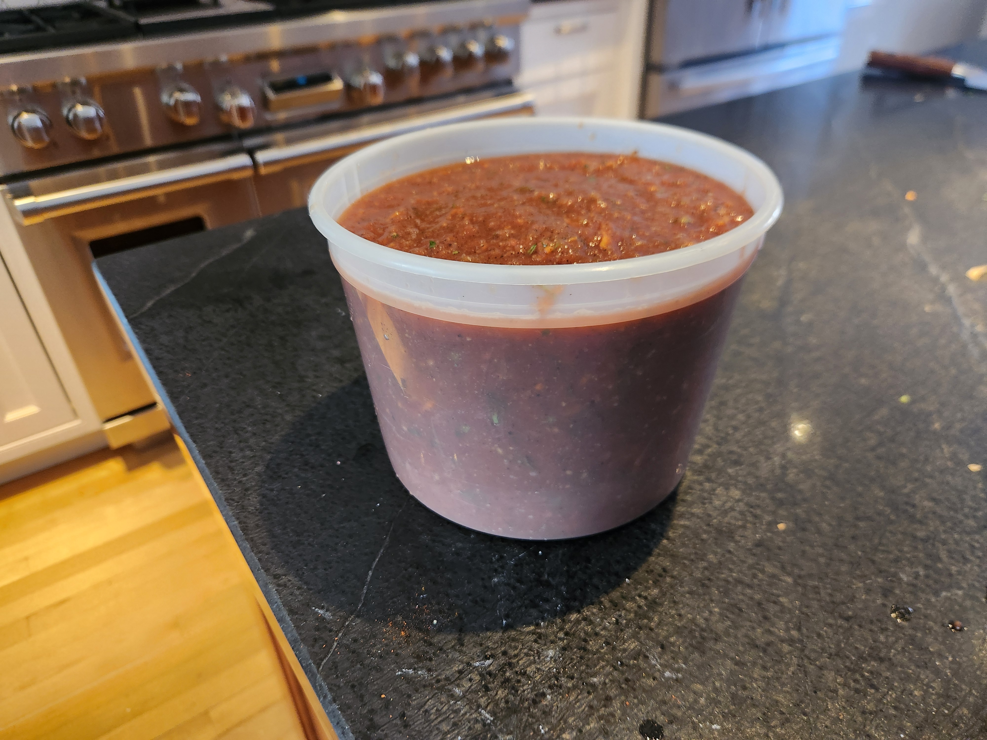 The brand of tomatoes also makes a difference, be sure not to use tomatoes packed with basil or San Marzano tomatoes; some brands are packed with heavy puree, don’t use these either, the results are too tomatoey and too thick. One of my favorite brands, especially because it’s local, is Pastene, I don’t use it for my salsa though, it falls under the too tomatoey and too thick category. I do, however, use Pastene for Italian style tomato sauces. I’ve found that the cheap store brands of whole peeled tomatoes, organic or not, are usually best for this recipe.
