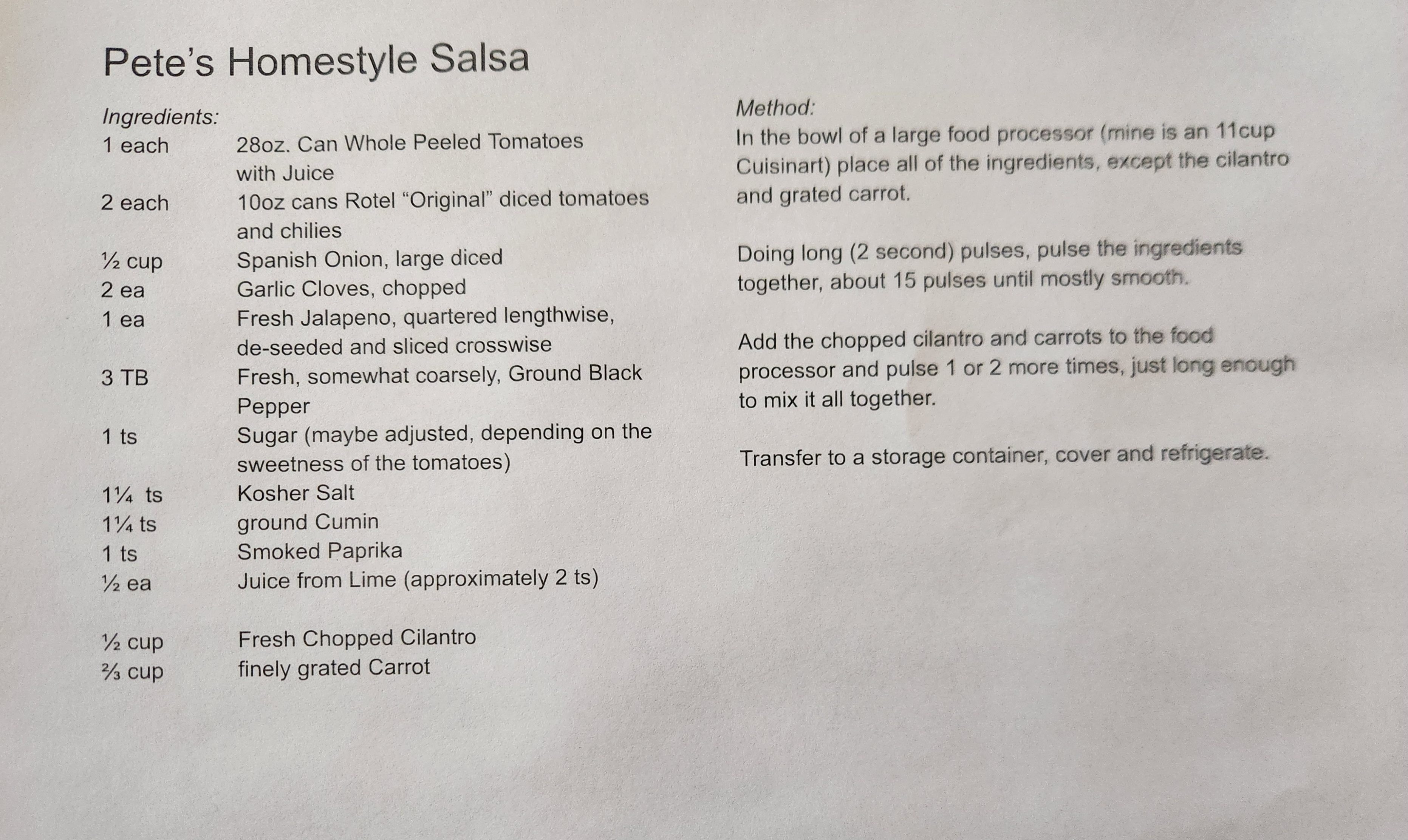 A photo of the “Restaurant Style Salsa” recipe that Dan passed along to me.